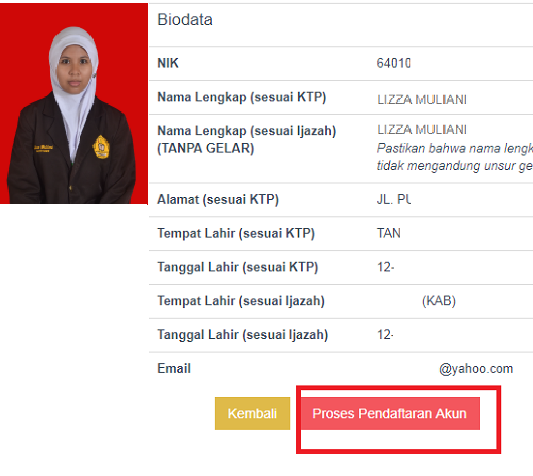 3. Jika sudah mengisi data dengan benar dan lengkap. Klik tombol proses pendaftaran akun.