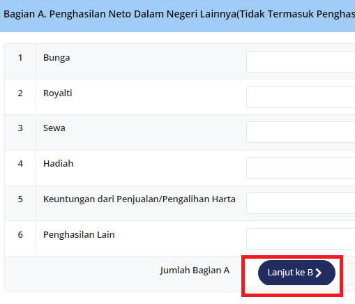 8. Disini, karena kebetulan memiliki harta atas nama diri pribadi, maka kami tambahkan, apabila tidak ada klik tombol lanjut.